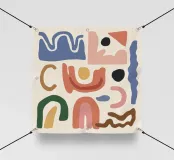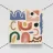 Una collezione di forme astratte dai toni terrosi, tra cui archi, linee e curve, disposte in una composizione equilibrata in stile bohémien.