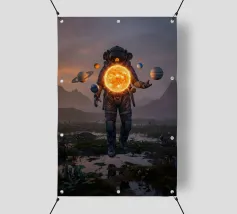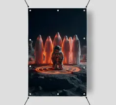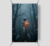 Questa opera d'arte oscura e cinematografica fonde fantascienza e orrore in una potente scena surreale. Un astronauta attraversa una foresta nebbiosa e infestata, circondato da mani inquietanti che emergono dall'acqua sottostante. Nella sua mano, un cuore incandescente proietta una luce calda contro la fredda atmosfera blu, simboleggiando la speranza, l'umanità e la sopravvivenza nell'ignoto. L'illuminazione tetra, gli alberi nebbiosi e il contrasto drammatico creano una storia visiva intensa ed emozionante. Perfetto per gli appassionati di dark fantasy, space art, temi psicologici e decorazioni murali d'atmosfera, questo disegno aggiunge mistero e profondità.