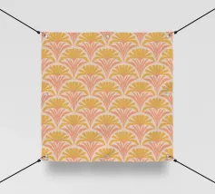 Semplice motivo bohémien stampato a blocchi nei colori rosa e bianco.