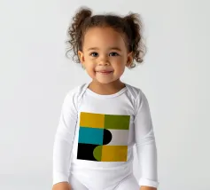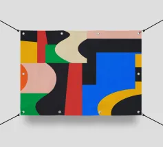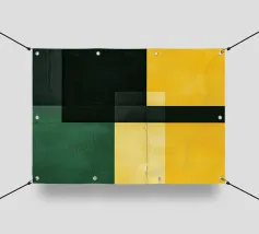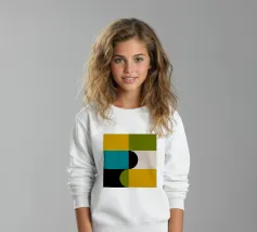 Ispirata all'estetica moderna del Bauhaus e della metà del secolo scorso, questa opera d'arte presenta audaci blocchi geometrici in giallo, verde, blu, nero e bianco sporco. Le sue linee pulite e i forti contrasti catturano l'armonia senza tempo del design modernista.