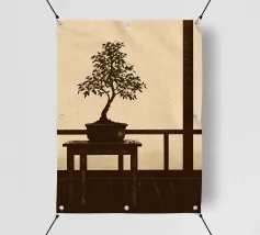 Illustrazione di un albero bonsai con un sole giallo