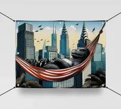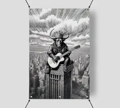Illustrazione comica di una parodia classica della storia di King Kong. Lo scimmione costruisce l'Empire State Building con i lego, ma non sa cosa fare con Barbie.