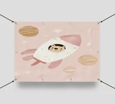 Una deliziosa illustrazione verticale con una squadra di estrosi coniglietti ingegneri che costruiscono un razzo colorato sotto un cielo da sogno. La scena è ricca di affascinanti dettagli costruttivi: scaffali, cianografie, secchi di vernice e lavoro di squadra in movimento. Perfetto per le stanze dei bambini o per le collezioni d'arte fantasiosa, questo pezzo invita gli spettatori a esplorare la gioia di costruire e sognare in grande.