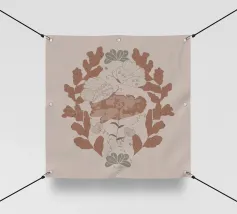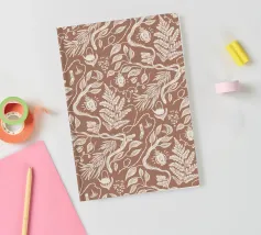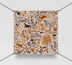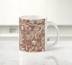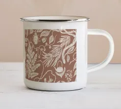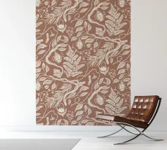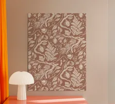 Motivo ispirato allo stile Cabin con elementi botanici e invernali. Palette di mousse beige e moka.