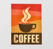 Questo poster nostalgico celebra il caffè con le immagini iconiche degli anni Settanta. Le sfumature di colore orizzontali nei toni del rosso, dell'arancione e del giallo ricordano l'estetica del viale del tramonto e le classiche insegne dei diner statunitensi. Le nuvole di vapore stilizzate e la chiara silhouette della tazza mostrano influenze dell'art déco e del design grafico di metà secolo. L'audace tipografia nella parte inferiore conferisce al pezzo un carattere sorprendente. Il perfetto equilibrio tra arte decorativa e design funzionale. Un must per gli amanti del vintage e del caffè, per le caffetterie e le cucine.