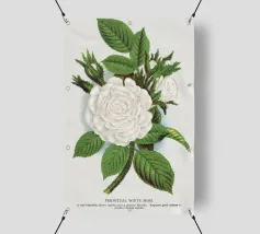 "White Camellia" da Choix des plus belles fleurs (1827) di Pierre-Joseph Redouté è un'illustrazione botanica vintage mozzafiato che cattura l'eleganza della Camellia japonica. I petali bianchi, morbidi e stratificati, contrastano splendidamente con il fogliame verde intenso, dipinto con la precisione e la delicata tecnica dell'acquerello tipica di Redouté. Questa opera d'arte senza tempo è ideale per gli amanti dell'arte botanica, dell'arredamento vintage e dei disegni tessili floreali, ed è un'aggiunta perfetta agli interni ispirati alla natura, alle stampe d'arte e alle collezioni botaniche storiche.