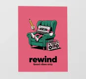 Un cenno nostalgico agli anni '80 e '90 con questa cassetta dal sapore retrò, comodamente seduti in poltrona, con la matita in mano. Il messaggio "Rewind - Good vibes only" invita a rallentare e a riconnettersi con le buone vibrazioni. Perfetto per gli appassionati di musica vintage, cultura pop e umorismo grafico. Un tocco divertente e retrò per una casa piena di personalità.