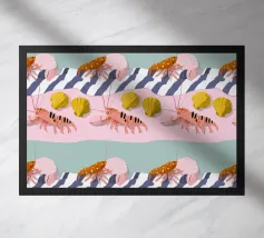 Un allegro motivo costiero con vivaci aragoste e conchiglie disposte in una semplice ripetizione all-over. Fresco, balneare e un po' preppy. Perfetto per portare le vibrazioni estive e il fascino del mare nella vita di tutti i giorni.