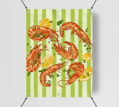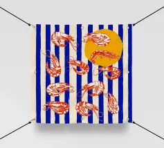 Un allegro motivo costiero con vivaci aragoste e conchiglie disposte in una semplice ripetizione all-over. Fresco, balneare e un po' preppy. Perfetto per portare le vibrazioni estive e il fascino del mare nella vita di tutti i giorni.