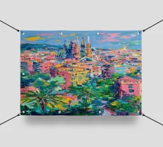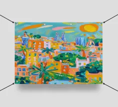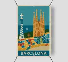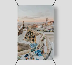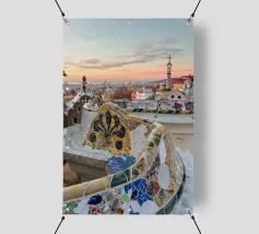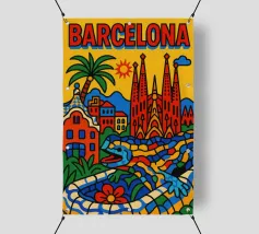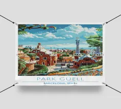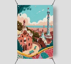 Celebrate il mondo fantastico di Antoni Gaudí con questo vibrante poster digitale del Parco Güell di Barcellona. L'opera d'arte presenta l'iconica panchina a mosaico e gli stravaganti padiglioni d'ingresso, sullo sfondo della città e del Mar Mediterraneo. I colori vivaci, le forme architettoniche uniche e il verde lussureggiante catturano l'essenza del modernismo catalano. Questo file digitale di qualità superiore (7000x5000 pixel, 300 dpi) garantisce dettagli eccezionali, perfetti per gli amanti dell'arte e dei viaggi in Spagna.