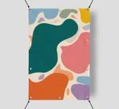 Un'opera d'arte astratta dinamica che presenta una collisione di forme organiche e audaci in colori vivaci come l'arancione, il rosa e l'azzurro intenso. La composizione è energica e moderna e rappresenta una forte dichiarazione visiva.