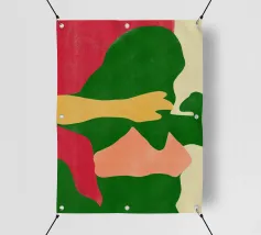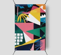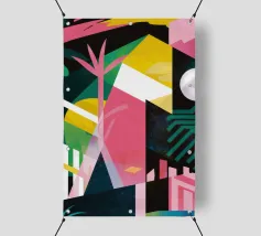 Un'energica opera d'arte astratta composta da frammenti di verde, giallo, rosa e nero che si scontrano tra loro. La composizione dinamica crea un senso di caos controllato e di energia moderna e tagliente.