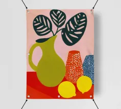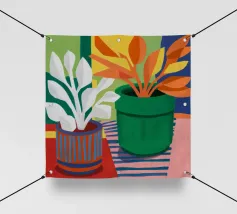 Questa elegante composizione botanica fonde la tecnica della silhouette di Matisse con il design di metà secolo. Le forme organiche delle piante danzano davanti a blocchi di colore geometrici nelle calde tonalità della terracotta, del senape e del blu. Lo stile ricorda i disegni tessili scandinavi degli anni '60 e crea un'atmosfera rilassante ma vivace. Le silhouette essenziali e la palette di colori armoniosi rendono questo pezzo perfetto per gli spazi moderni che combinano un'eleganza naturale con un'estetica senza tempo.