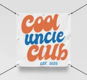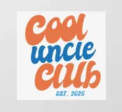 Un badge tipografico per lo zio con stile, cuore e umorismo: il lettering "Cool uncle club" combina due colori - arancione per "cool" e "club", blu per "uncle" - e crea così un equilibrio visivo tra calore e affidabilità. Sotto, nella stessa tipografia blu: "EST. 2025" - come un timbro di fondazione per una nuova era di "uncleliness".