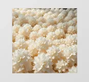 Questa splendida immagine cattura un sereno e intricato campo di fiori ritagliati in carta, che assomiglia a un mare di dalie bianche luminescenti. Ogni fiore è stato meticolosamente realizzato con più strati, creando un senso di profondità e delicata consistenza. Le morbide tonalità crema e bianco sporco, immerse in una luce delicata, evocano una sensazione di purezza, tranquillità e raffinata eleganza. Questo pezzo è perfetto per chi apprezza l'artigianato dettagliato e un'estetica pulita e minimalista. Sarebbe una splendida aggiunta a un arredamento moderno, scandinavo o shabby chic, aggiungendo un tocco di sofisticata arte floreale a qualsiasi spa.