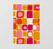 Questo disegno astratto è un omaggio esplosivo allo stile moderno della metà del secolo scorso e all'energia sfrenata della pop art. Rettangoli e quadrati arrotondati danzano in una tavolozza di colori caldi come l'arancio brillante, il fucsia, il rosso intenso e il pesca tenue. La composizione irradia un ottimismo quasi psichedelico, ma perfettamente equilibrato, grazie alla sua giocosità geometrica e alla stratificazione delle forme. Un capolavoro che diffonde immediatamente gioia, ravviva l'ambiente e celebra l'estetica degli anni '60 e '70 con una freschezza senza tempo.