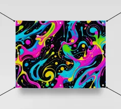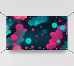 Spruzzi colorati di rosa e blu creano un energico disegno astratto su uno sfondo scuro, perfetto da usare come sfondo del desktop o decorazione artistica.