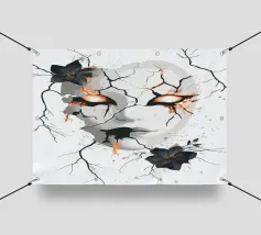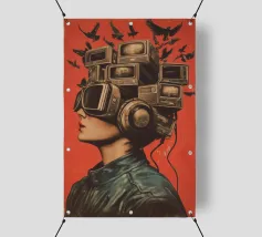 Una misteriosa demonessa con una benda e seducenti labbra rosse domina questa composizione oscuramente erotica. L'estetica grunge ricorda i manifesti punk degli anni '80, mentre la scritta "Spooky" in rosso sangue rafforza l'atmosfera di Halloween. I contrasti in bianco e nero con accenti rossi mirati creano una tensione drammatica. Questo provocatorio mix di gotico e street art trasforma la moda in dichiarazioni ribelli, perfette per chiunque ami il lato oscuro!