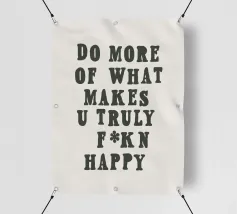 La frase "Fai di più di ciò che ti rende felice" riflette un senso di libertà e individualità. Uno sfondo luminoso di sfumature morbide e coriandoli aggiunge a questo pezzo un'energia edificante e motivazionale.