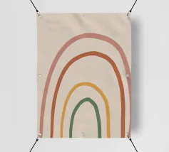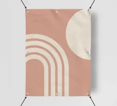 Una rilassante illustrazione grafica astratta a doppio arcobaleno, caratterizzata da linee e forme geometriche bianche in tonalità verde salvia e soffice pesca. Questo disegno sereno e minimale evoca l'inizio della primavera, la tranquillità e l'ottimismo, perfetto per aggiungere un fascino di ispirazione rétro al vostro spazio. Ideale per ravvivare una stanza tranquilla, dona armonia ad opere d'arte da parete, cuscini e accessori, offrendo un'estetica pacifica per una vita moderna.
