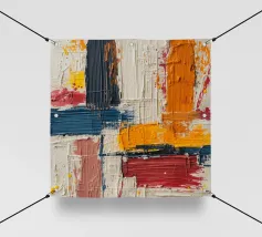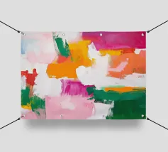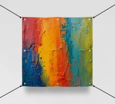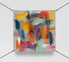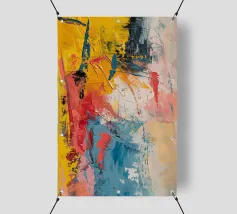 Colori vivaci si fondono in forme dinamiche, creando una composizione gioiosa ed energica. L'assortimento di tonalità offre un'esperienza visiva sorprendente e piena di movimento.
