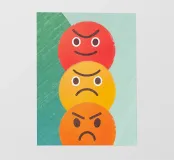 Illustrazione allegra con varie espressioni di facce arrabbiate con disegni unici, che irradiano uno spirito di onestà e coraggio nell'esprimere le emozioni.