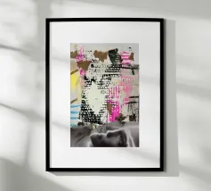 Collage con pittura acrilica, pasta per texture ed elementi per poster