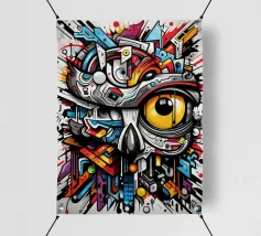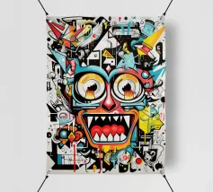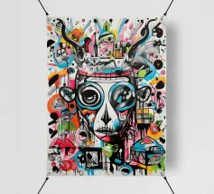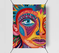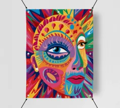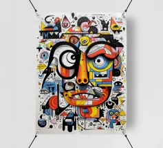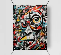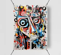 Un dinamico ritratto cubista astratto che mostra colori vivaci, tratti del viso surreali e pennellate audaci su uno sfondo nero. La composizione emana creatività, energia e stile artistico contemporaneo.