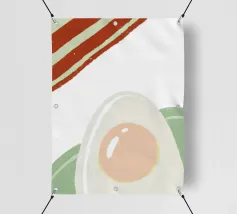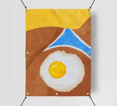 Un affascinante disegno di ispirazione retrò mostra un uovo fritto e una fetta di bacon croccante su un vivace sfondo rosso. Il design minimalista con linee pulite e una leggera texture vintage conferisce all'immagine un'atmosfera nostalgica che ricorda la classica cultura americana della colazione. Perfetto per gli appassionati di estetica retrò e ideale come elemento decorativo in cucina o in sala da pranzo.