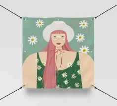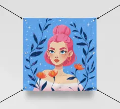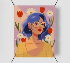 Il dipinto raffigura una persona con capelli corti e rosa su uno sfondo di fiori di ciliegio. La persona indossa una camicia verde e la composizione complessiva emana un senso di crescita e di sicurezza.