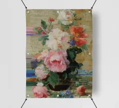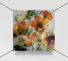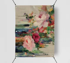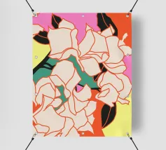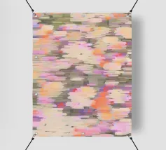 Questa vibrante arte digitale astratta combina colori brillanti e texture glitterate ispirate a motivi botanici. Le strisce orizzontali in rosa, arancione, blu e verde portano nuova energia in ogni spazio abitativo e celebrano la bellezza della natura colorata.