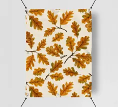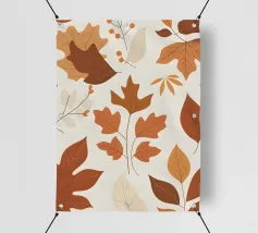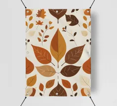 Vibranti foglie autunnali di diverse forme e sfumature si disperdono su uno sfondo chiaro, evidenziando la diversità del fogliame autunnale. Questa opera d'arte cattura l'essenza del colore autunnale.