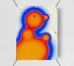 Due forme dai contorni fusi si fronteggiano, come se levitassero. I loro colori cangianti ondeggiano su uno sfondo color lavanda, creando un effetto calmo e ipnotico. L'immagine evoca un dialogo silenzioso tra due entità astratte, vicine ma separate, in uno spazio fluttuante.