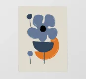 Una composizione minimalista e sofisticata presenta due fiori blu stilizzati su steli eleganti su uno sfondo neutro e colorato, incarnando il principio del "meno รจ meglio".