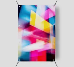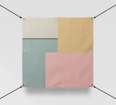 Forme geometriche dai colori vivaci sono disposte in un motivo accattivante. La composizione presenta quadrati e rettangoli di vari colori, creando un gioioso impatto visivo.