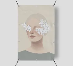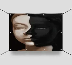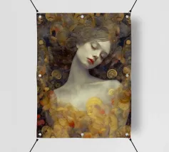 Un'opera d'arte moderna ed espressiva che mostra una figura femminile di profilo, metà umana e metà pietra. Le sottili transizioni tra pelle e struttura simboleggiano profondità emotiva, fragilità e forza allo stesso tempo. La combinazione di colori neutri, beige e grigi, conferisce all'immagine calma ed eleganza, perfetta per ambienti moderni, minimalisti e profondi.