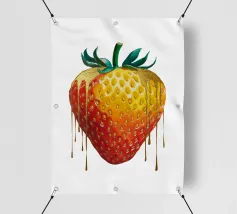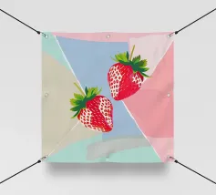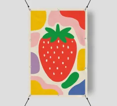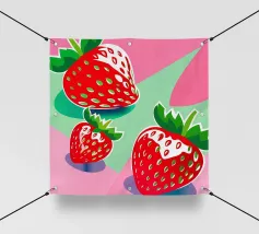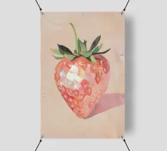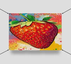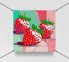Una singola fragola è al centro di questa opera colorata e moderna. Lo sfondo turchese e rosa con struttura astratta contrasta con la superficie lucida del frutto. L'opera d'arte ricorda la pop art e colpisce per la sua presenza grafica e i suoi colori decisi. Ideale per cucine moderne, spazi di design o come elemento di richiamo in un ambiente creativo.