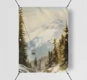 Questo idilliaco motivo invernale mostra una funivia che attraversa una foresta montana innevata fino alle maestose vette. I caldi raggi del sole illuminano la scena, mentre gli abeti e le montagne innevate creano un'atmosfera alpina da sogno. Un'opera d'arte che cattura perfettamente il fascino della natura, dell'avventura e delle vacanze invernali, ideale per tutti gli amanti della montagna e degli sport invernali.