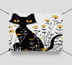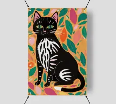 Portate un tocco di giocosa magia nel vostro spazio con questa stravagante illustrazione di gatto nero, ornata da vivaci fiori di ispirazione boho in calde tonalità acquerello. Con il suo fascino incantevole e la tavolozza accogliente, quest'opera d'arte irradia personalità e cuore, rendendola un'aggiunta deliziosa a qualsiasi stanza. Perfetta per gli amanti dei gatti, gli interni boho e le idee regalo uniche, aggiunge un tocco artistico sia all'arte da parete che agli accessori di uso quotidiano.
