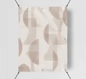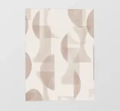 Il disegno presenta un'accattivante disposizione di cerchi, rettangoli e forme astratte di foglie sovrapposte, che alludono sottilmente a forme organiche all'interno della struttura. La texture granulosa aggiunge profondità e interesse visivo.