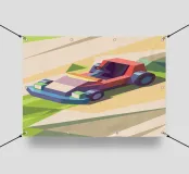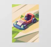 Illustrazione di un go-kart minimalista su una pista con uno stile geometrico moderno.