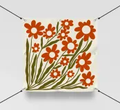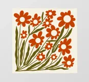 Una gioiosa esplosione di energia vintage: i vivaci fiori arancioni e le foglie verdi catturano l'atmosfera libera degli anni '60. Questo design floreale vivace dona un tocco retrò e un'atmosfera da metà del secolo scorso a qualsiasi interno moderno.