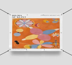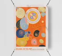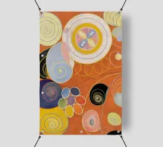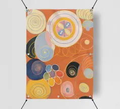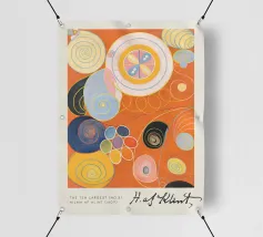 Questa vivace stampa d'arte presenta "The Ten Largest (No.3), Youth" di Hilma af Klint, un'ipnotica opera astratta del 1907. Su un caldo sfondo arancione, la composizione è un ricco arazzo di spirali vorticose, cerchi concentrici e forme organiche in una variegata tavolozza di gialli, blu, rosa e viola. Quest'opera mostra la visione spirituale e astratta pionieristica di Klint, che esplora i temi della crescita e dello sviluppo attraverso un intricato simbolismo. Questo poster digitale di alta qualità (7000x5000 pixel, 300 dpi) cattura magnificamente la bellezza eterea e la maestria innovativa dell'opera di Klint.