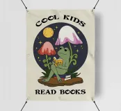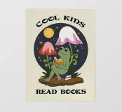 "Cool Kids Read Books" è un'illustrazione giocosa e affascinante con una rana rilassata che legge sotto funghi stravaganti e un cielo notturno stellato. Perfetta per le stanze dei bambini, le aule scolastiche o gli angoli dedicati ai libri, questa opera d'arte celebra la gioia della lettura, l'immaginazione e la curiosità, ricordandoci che la vera figaggine viene dalla conoscenza e dalle storie.