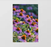 Grappolo di fiori di conifera rosa immerso nel caldo bagliore del tramonto, che cattura la serena bellezza della natura e la luce tranquilla.