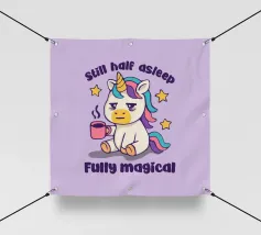 Un simpatico unicorno è sdraiato con una criniera colorata e appare rilassato e soddisfatto. Sopra e sotto l'unicorno, il testo recita umoristicamente: "Mi passerà, devo solo essere drammatico prima".