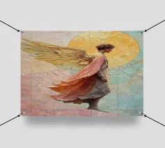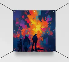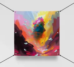 Arte digitale drammatica con potere mitologico: Icaro mostra una silhouette con ali potenti, circondata da un'energia cromatica esplosiva. L'intensa tavolozza - rosso incandescente, giallo brillante, turchese freddo - e l'estetica frammentata ricordano il cyberpunk e la game art contemporanea. I raggi di luce svettanti e le forme frammentate creano una tensione drammatica tra il trionfo e la caduta. Un'interpretazione moderna dell'antico mito: l'arroganza, la trasformazione e il prezzo dell'ascesa. Perfetto per gli amanti dell'arte digitale epica e dei temi mitologici.