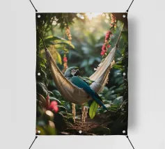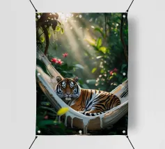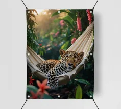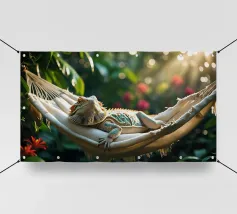 Questa iguana giace immobile sulla sua amaca, come se avesse deciso di non fare nulla oggi. Il sole filtra attraverso il verde, il tempo sembra essersi fermato. Un poster perfetto per ricordarvi che è giusto non fare nulla per un po', e che è bene tenersi l'estate ancora per un po'.