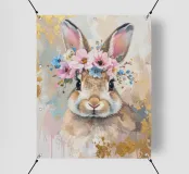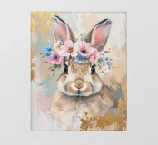 Questo design moderno presenta un simpatico coniglio con fiori sulla testa. Disegnato con delicati acquerelli e accenti dorati, unisce la bellezza naturale all'eleganza artistica. Le morbide sfumature di colore e lo stile astratto conferiscono a qualsiasi ambiente un'atmosfera romantica e giocosa, ma allo stesso tempo elegante: un vero e proprio colpo d'occhio per la vostra casa.