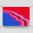 Illustrazione astratta con sfondo rosso e blu, strisce rosa e grande arco curvo al centro. Stile pop art minimalista con colori audaci e saturi, texture granulosa, griglia simmetrica e angolo di ripresa basso. La composizione centrale crea un effetto estetico potente.